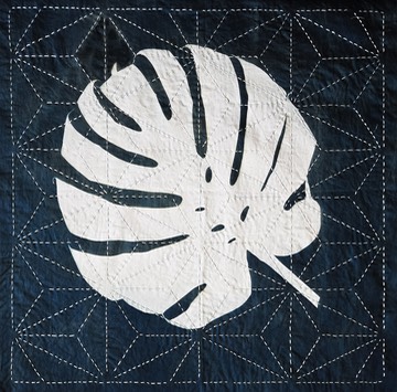 Cyanotypes are the earilest form of photography, dating to the 1842. The cotton is treated with a photographic chemical and exposed to the sun or other full-spectrum light source to develop. Sashiko stithces are hand-applied. Sashiko is a traditional Japenese stitching that is intended to be meditative and peaceful to the artist and the viewer.